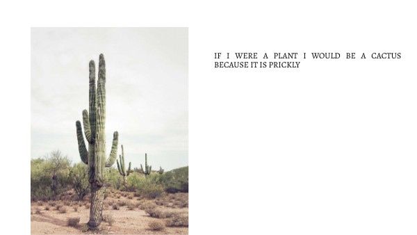 IF I WERE A PLANT I WOULD BE A CACTUS BECAUSE IT IS PRICKLY
