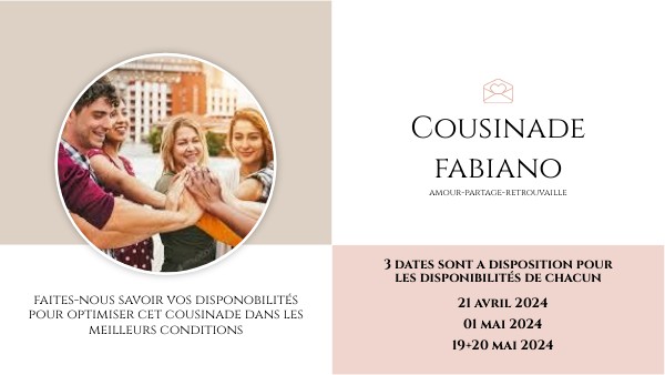faites-nous savoir vos disponobilités pour optimiser cet cousinade dans les meilleurs conditions