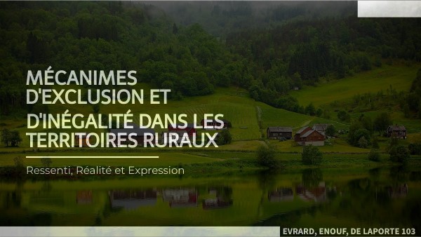 http://theconversation.com/inegalites-scolaires-les-eleves-des-territoires-ruraux-manquent-ils-vraiment-dambition-161112 Vie publique : http://www.vie-publique.fr/en-bref/288986-territoires-ruraux-un-acces-aux-services-publics-encore-insuffisant DNA : http://www.dna.fr/societe/2021/10/19/en-zone-rurale-des-inegalites-professionnelles-marquees-entre-les-femmes-et-les-hommes INSEE : http://www.insee.fr/fr/statistiques/5039991?sommaire=5040030 Vie publique : http://www.vie-publique.fr/parole-dexpert/289764-transition-numerique-et-smart-villages-dans-les-territoires-ruraux Le Dauphiné Libéré : http://www.ledauphine.com/societe/2021/10/19/mobilite-en-milieu-rural-toujours-d-importantes-inegalites-femmes-hommes Vie publique : http://www.vie-publique.fr/rapport/32352-la-mobilite-et-les-transports-dans-les-territoires-ruraux Vie publique : http://www.vie-publique.fr/rapport/30856-pauvrete-precarite-solidarite-en-milieu-rural Open Edition : http://journals.openedition.org/bagf/6171 Cairn.info : http://www.cairn.info/revue-vie-sociale-2018-2-page-13.htm Agence nationale de la cohésion des territoires : http://agence-cohesion-territoires.gouv.fr/territoires-et-ruralites-99