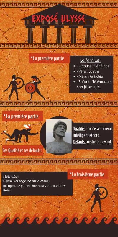 Mots clés : Ulysse connu, intelligence rusé, redoutable, sa métis, rôle clé dans la guerre, l'origine du Cheval de Troie.