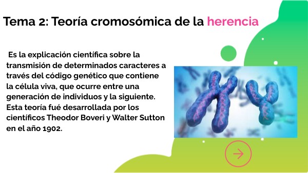 Es la explicación científica sobre la transmisión de determinados caracteres a través del código genético que contiene la célula viva, que ocurre entre una generación de individuos y la siguiente.Esta teoría fué desarrollada por los científicos Theodor Boveri y Walter Sutton en el año 1902.