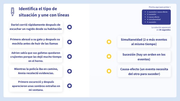 - 1: sucesión/ causa-efecto