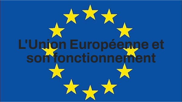Dans cette présentation, nous allons vous présenter le fonctionnement de l'UE (Union Européenne). Elle sera coupée en 4 parties: Les valeurs, principes, symboles et enfin les textes de lois correspondant aux lois mais aussi à la date de création de l'Union Européenne.