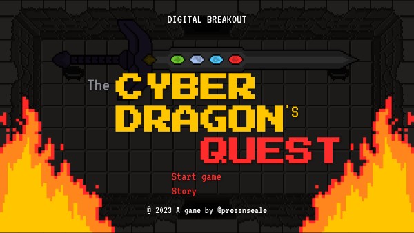 Thank goodness you’ve come! We need your help! You need to find the 4 Digital Citizenship Gems so that the cyber sword has enough power and then defeat the fearsome cyber dragon that is terrorizing our people online…