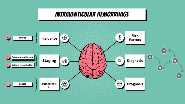 • Grade I – Bleeding into the germinal matrix • Grade II – Blood fills less than 50% of the ventricle • Grade III – Blood fills over 50% of the ventricle • Grade – IV Hemorrhagic necrosis of the periventricular white matter