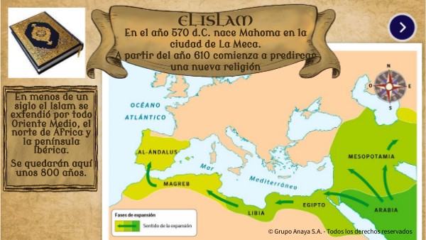 En menos de un siglo el Islam se extendió por todo Oriente Medio, el norte de África y la península Ibérica. Se quedarán aquí unos 800 años.