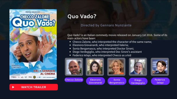 Quo Vado? is an Italian commedy movie released on January 1st 2016. Some of its main actors have been: