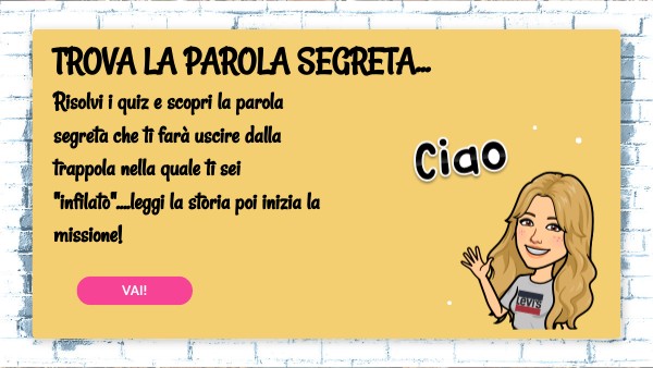 Risolvi i quiz e scopri la parola segreta che ti farà uscire dalla trappola nella quale ti sei "infilato"....leggi la storia poi inizia la missione!