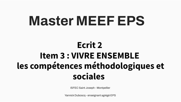 Ecrit 2 Item 3 : VIVRE ENSEMBLE les compétences méthodologiques et sociales