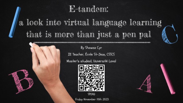 By Shawna Cyr IE Teacher, École St-Jean, CSSCS Master's student, Université Laval