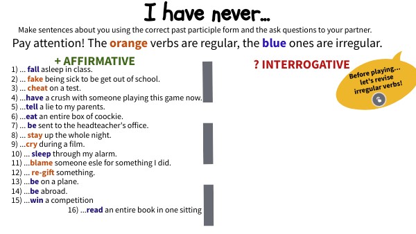 Before playing... let's revise irregular verbs!