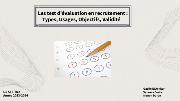 Les test d'évaluation en recrutement : Types, Usages, Objectifs, Validité