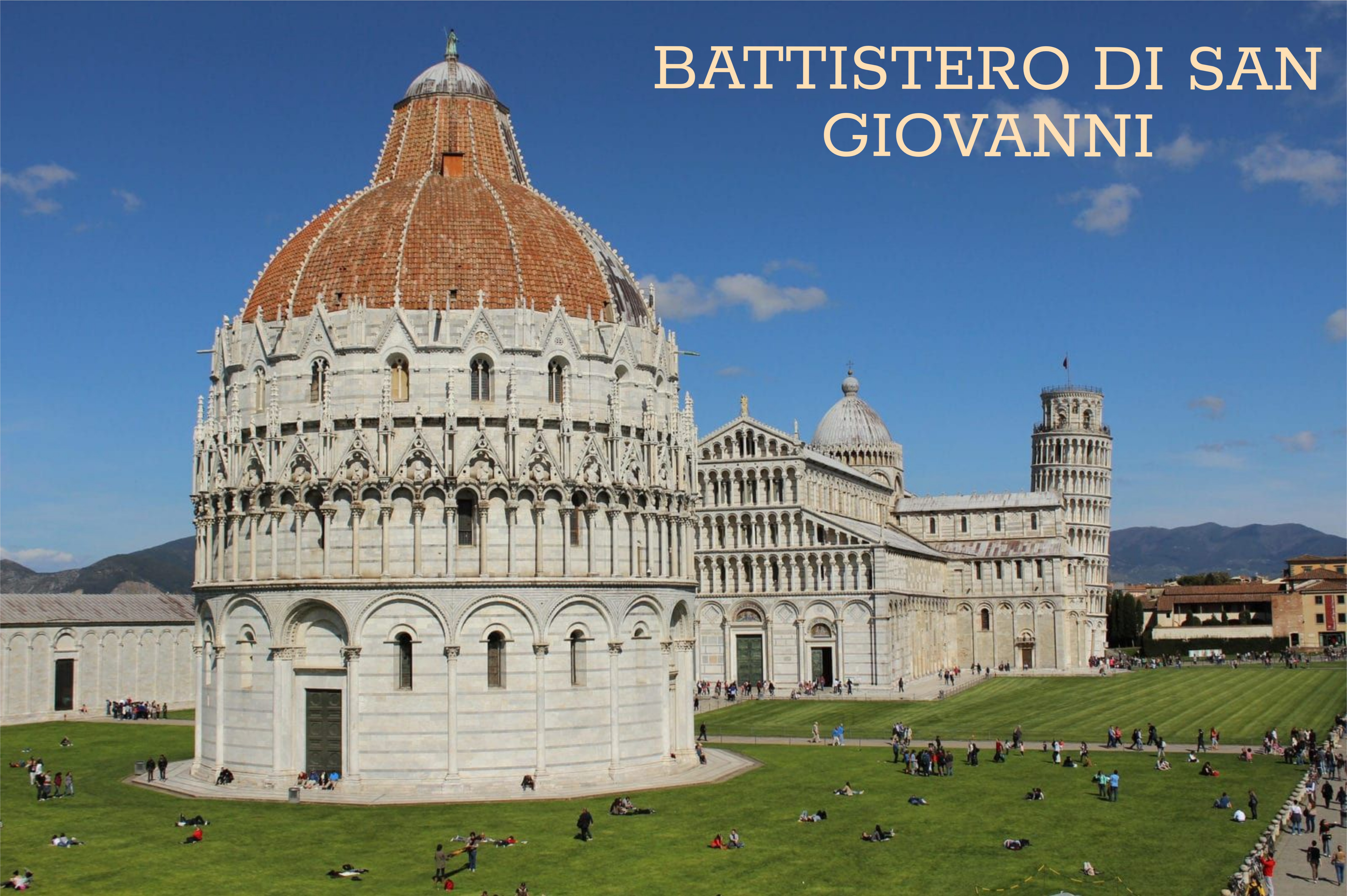 Il Battistero di San Giovanni è uno dei monumenti della Piazza dei Miracoli, a Pisa. Si trova di fronte alla facciata occidentale della Cattedrale di Santa Maria Assunta.Sostituisce un precedente battistero, più piccolo, che si trovava a nord-est della Cattedrale, dove ora si trova il Camposanto.La costruzione è iniziata nel 1153 per opera di Diotisalvi, che firma l’edificio su uno dei pilastri interni e sostituisce un precedente battistero, più piccolo, che si trovava a nord-est della Cattedrale, dove ora si trova il Camposanto.