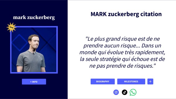 "Le plus grand risque est de ne prendre aucun risque... Dans un monde qui évolue très rapidement, la seule stratégie qui échoue est de ne pas prendre de risques."