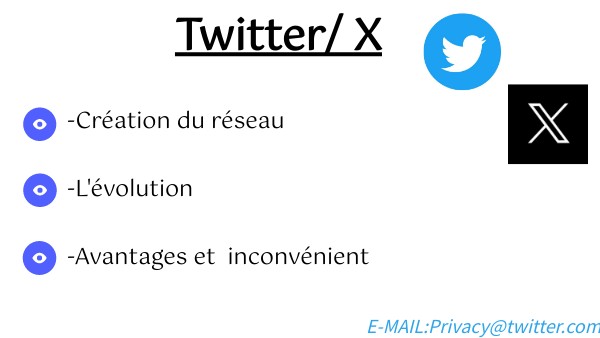 -Twitter a été fondé par 4 hommes, le 21 Mars 2006 en Californie le but de cette création c'était pour communiquer, publier, partager et réagir a des photos et vidéos...