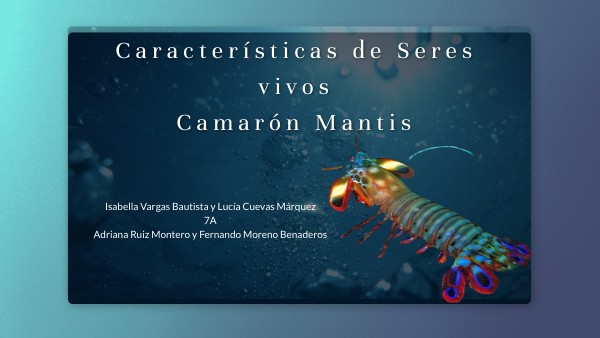 Este es nuestro proyecto de Características de Los Seres Vivos .Nuestra especie será el CAMARÓN MANTIS