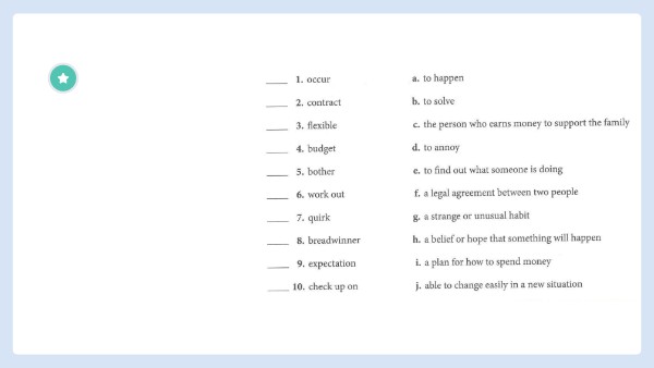 Match the words Workshop 6