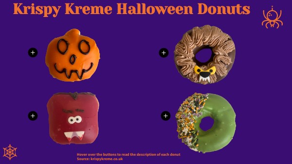 Hover over the buttons to read the description of each donut Source: krispykreme.co.uk