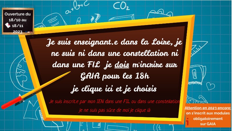 Je suis enseignant.e dans la Loire, je ne suis ni dans une constellation ni dans une FIL je dois m'incrire sur GAIA pour les 18h je clique ici et je choisis