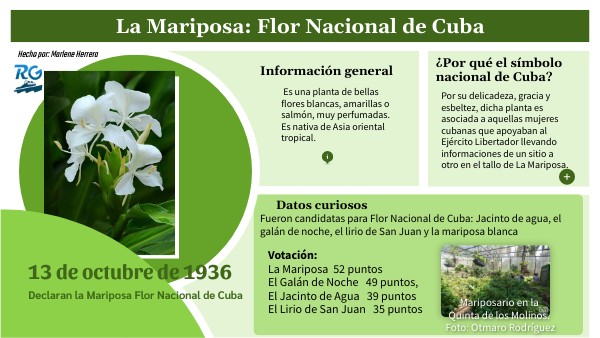 Por su delicadeza, gracia y esbeltez, dicha planta es asociada a aquellas mujeres cubanas que apoyaban al Ejército Libertador llevando informaciones de un sitio a otro en el tallo de La Mariposa.