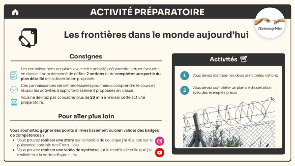 Les connaissances acquises avec cette activité préparatoire seront évaluées en classe. Il sera demandé de définir 2 notions et de compléter une partie du plan détaillé de la dissertation proposée. Ces connaissances seront nécessaires pour mieux comprendre le cours et réussir les activités d’approfondissement proposées en classe. Vous ne devriez pas consacrer plus de 20 min à réaliser cette activité préparatoire.
