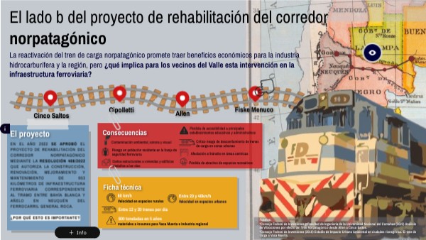 Fuentes: *Consejo Federal de Inversiones y Facultad de Ingeniería de la Universidad Nacional del Comahue (2023) Análisis de Vibraciones por efecto del Tren Norpatagónico desde Allen a Cinco Saltos. *Consejo Federal de Inversiones (2018) Estudio de Impacto Urbano Ambiental en ciudades rionegrinas. El tren de carga a Vaca Muerta.