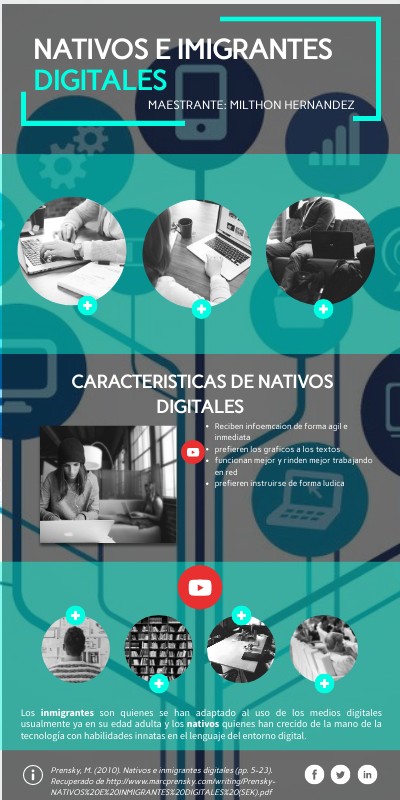 Los inmigrantes son quienes se han adaptado al uso de los medios digitales usualmente ya en su edad adulta y los nativos quienes han crecido de la mano de la tecnología con habilidades innatas en el lenguaje del entorno digital.