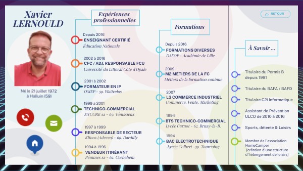 - Titulaire du C2i- Maîtrise des outils Word, Excel, PowerPoint ... - TICE (Technologies de l'Information et de l' Communication pour l'Enseignement) : Génial.ly, Canva, Jimdo, Padlet, Kahoot, Pronote, Sakai, Moodle, Apogée ... - SIC (Système d'Information Commercial) - Digitalisation du point de vente (omnicanalité)
