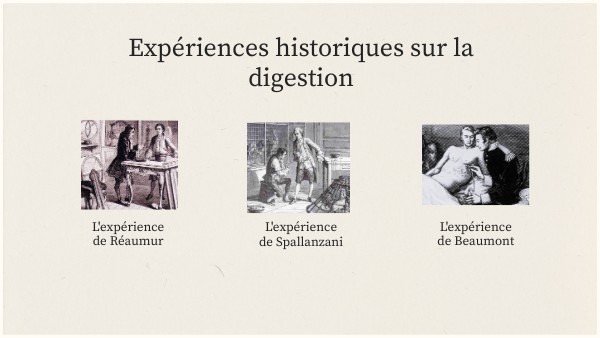 Au XVIIIe siècle, les scientifiques s’interrogent sur le mécanisme de la digestion. Une des théories de l’époque est celle de Giovanni Borelli (1608-1672) pour qui la digestion serait un phénomène purement mécanique : les aliments seraient simplement broyés dans le tube digestif. Le scientifique français Réné-Antoine Ferchault de Réaumur (1683-1757) ne croit pas à cette théorie. Il étudie la digestion sur des rapaces qui sont des oiseaux dont la particularité est de rejeter sous forme de pelote les parties de leurs proies qu’ils ne digèrent pas (plumes, os, poils…). Voici le récit d’une de ses expériences : « Je plaçai dans un gros tube en fer blanc ouvert aux deux bouts, un morceau de viande. Le tube ainsi garni fut donné à une buse pour son premier déjeuner. Ce ne fut que le lendemain que je trouvai le tube qu’elle venait de rendre : il avait toute sa rondeur, on ne découvrait sur sa surface extérieure aucune trace de frottements. Le morceau de viande avait été réduit peut-être au quart de son premier volume ; ce qui en restait était couvert par une espèce de bouillie venue probablement de celles de ses parties qui avaient été dissoutes. »