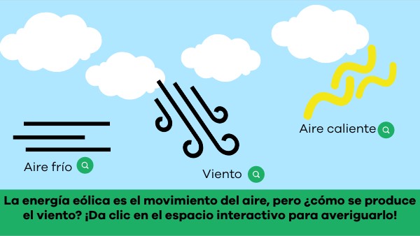 La energía eólica es el movimiento del aire, pero ¿cómo se produce el viento? ¡Da clic en el espacio interactivo para averiguarlo!