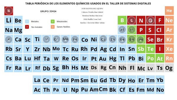 TABLA PERIÓDICA DE LOS ELEMENTOS QUÍMICOS USADOS EN EL TALLER DE SISTEMAS DIGITALES