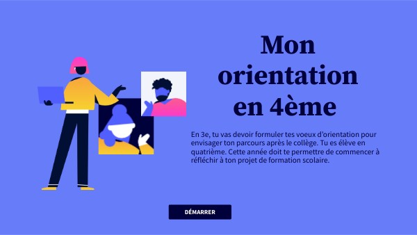 En 3e, tu vas devoir formuler tes voeux d’orientation pour envisager ton parcours après le collège. Tu es élève en quatrième. Cette année doit te permettre de commencer à réfléchir à ton projet de formation scolaire.
