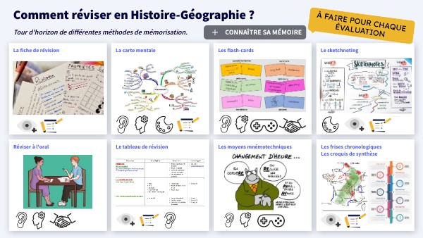 Essentiels en cours d'Histoire-Géographie, ces deux méthodes permettent de mémoriser les repères chronologiques (dates) et les repères spatiaux (localisations), aux fondements même de ces deux matières.