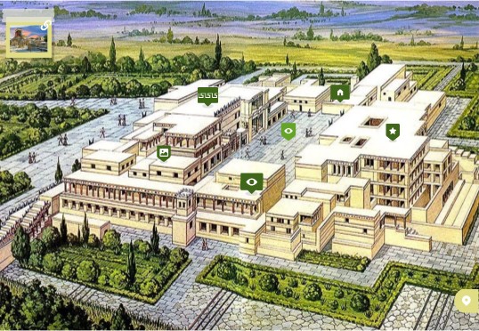 Il palazzo di Cnosso, o palazzo di minosse, fu costruito nel 2000 a.C. ed era il più grande e maestoso dei 4 palazzi dell’età minoica, a Creta. Sorgeva nella parte centrale dell’isola, a 6 chilometri dal mare, copriva una superficie di 20 000 metri quadrati, era privo di pianta organica e disponeva di 1300 ambienti comunicanti fra loro grazie a corridoi e passaggi, disposti su 4-5 piani.