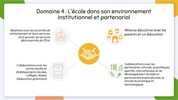 Domaine 4 : L'école dans son environnement institutionnel et partenarial