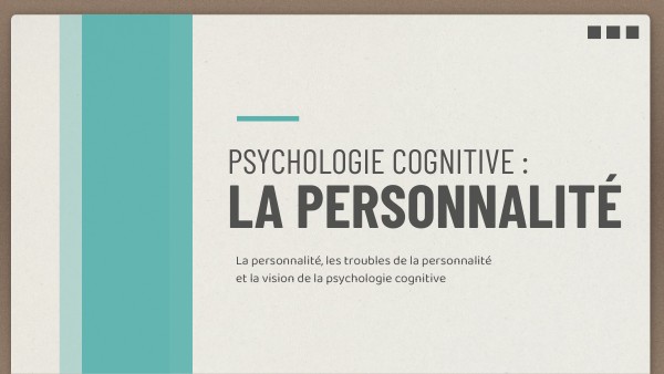La personnalité, les troubles de la personnalité et la vision de la psychologie cognitive