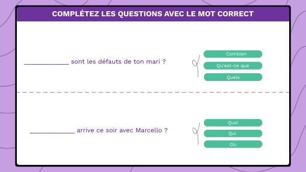 Complétez les questions avec le mot correct