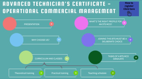 The aim of the BTS MCO is to take operational responsibility for all or part of a sales unit, thanks to :