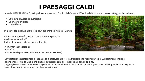La fascia INTERTROPICALE,cioè quella compresa tra il Tropico del Cancro e il Tropico del Capricorno presenta tre grandi ecosistemi: