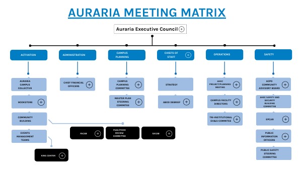 The Auraria Executive Council (AEC) meets monthly and consists of: Auraria Higher Education Center (AHEC) Chief Executive Officer Community College of Denver (CCD) President Metropolitan State University of Denver (MSU Denver) President University of Colorado - Denver (CU Denver) Chancellor