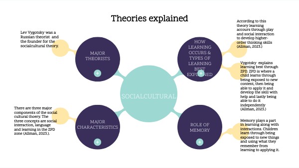 There are three major components of the social cultural thoery. The three concepts are social interaction, language and learning in the ZPD zone (Allman, 2023.).