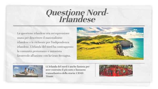 la questione nord-irlandese, conosciuta anche come "Troubles" in inglese è una guerriglia svolta tra la fine degli anni Sessanta e Novanta in Irlanda del nord