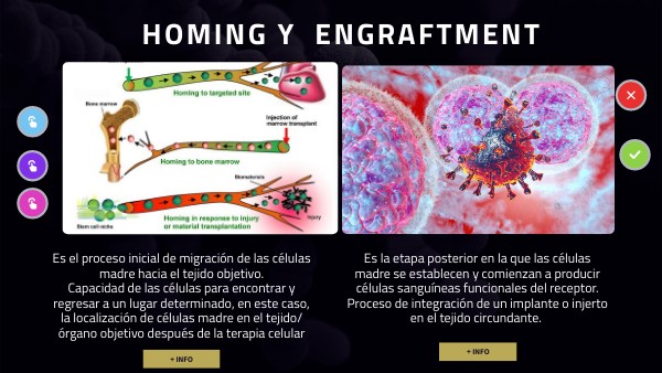 Es el proceso inicial de migración de las células madre hacia el tejido objetivo.Capacidad de las células para encontrar y regresar a un lugar determinado, en este caso, la localización de células madre en el tejido/órgano objetivo después de la terapia celular