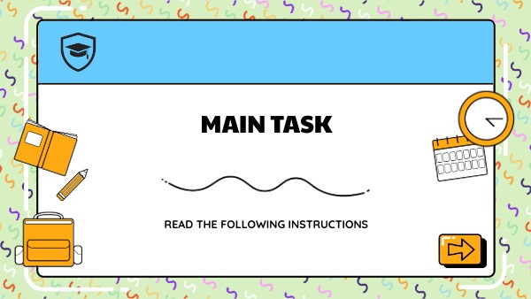 TRY TO INCLUDE AT LEAST ONE OF THE IDIOMS STUDIED IN THE CONVESATION. LET'S REMEMBER THEM: - Keep one’s eyes on the ball (to give something one’s full attention and to not lose focus) - A long shot (something that has a very low probability of happening) - Not going to fly (something isn’t expected to work out)