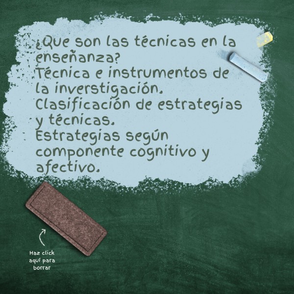 ¿Que son las técnicas en la enseñanza? Técnica e instrumentos de la inverstigación. Clasificación de estrategias y técnicas. Estrategias según componente cognitivo y afectivo.