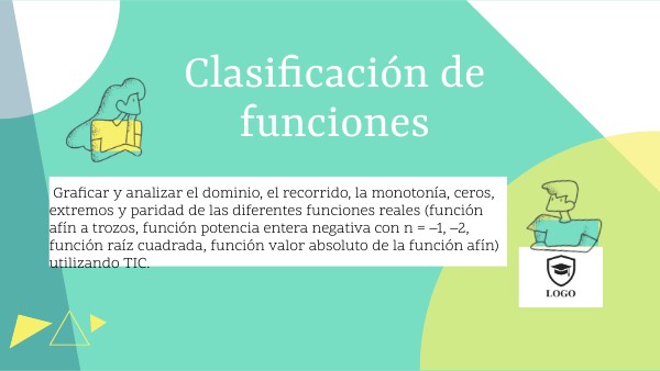 Graficar y analizar el dominio, el recorrido, la monotonía, ceros, extremos y paridad de las diferentes funciones reales (función afín a trozos, función potencia entera negativa con n = –1, –2, función raíz cuadrada, función valor absoluto de la función afín) utilizando TIC.