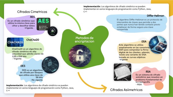 Implementación: Los algoritmos de cifrado simétrico se pueden implementar en varios lenguajes de programación como Python, Java, C++
