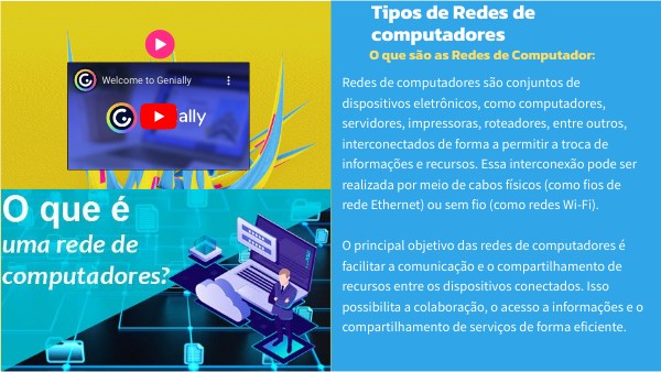 Redes de computadores são conjuntos de dispositivos eletrônicos, como computadores, servidores, impressoras, roteadores, entre outros, interconectados de forma a permitir a troca de informações e recursos. Essa interconexão pode ser realizada por meio de cabos físicos (como fios de rede Ethernet) ou sem fio (como redes Wi-Fi). O principal objetivo das redes de computadores é facilitar a comunicação e o compartilhamento de recursos entre os dispositivos conectados. Isso possibilita a colaboração, o acesso a informações e o compartilhamento de serviços de forma eficiente.