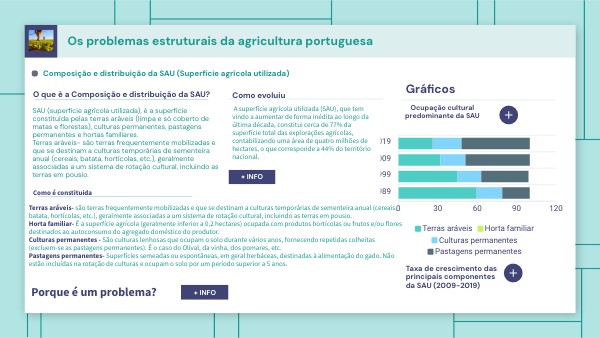 A forma como está composta e distribuída a superfície agrícola utilizada (SAU), impulsionará maior ou menor rendimento agrícula dessa tal superfície utilizada.Se os agricultores gerirem mal essa composição, não tendo o aproveitamento total, isto trará problemas estruturais da agricultura portuguesa. Ou seja, não iriam ter o máximo benefício da agricultura o que pode gerar perda.