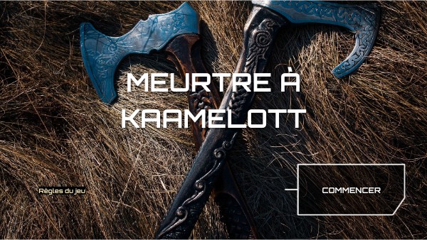 Cet après-midi, alors que le roi Lancelot préparait la défense du seigneur Loth, le calme habituel du château a été brisé par le cri de l‘une des esclaves. Le roi Arthur vient d'être retrouvé mort par une servante. Son corps gisait dans le jardin. Toute la cour se précipite et découvre le corps. Un grouillot est immédiatement dépêché auprès de Merlin et le château est fermé. Le meurtre semble récent, et l’assassin est certainement encore parmis vous.